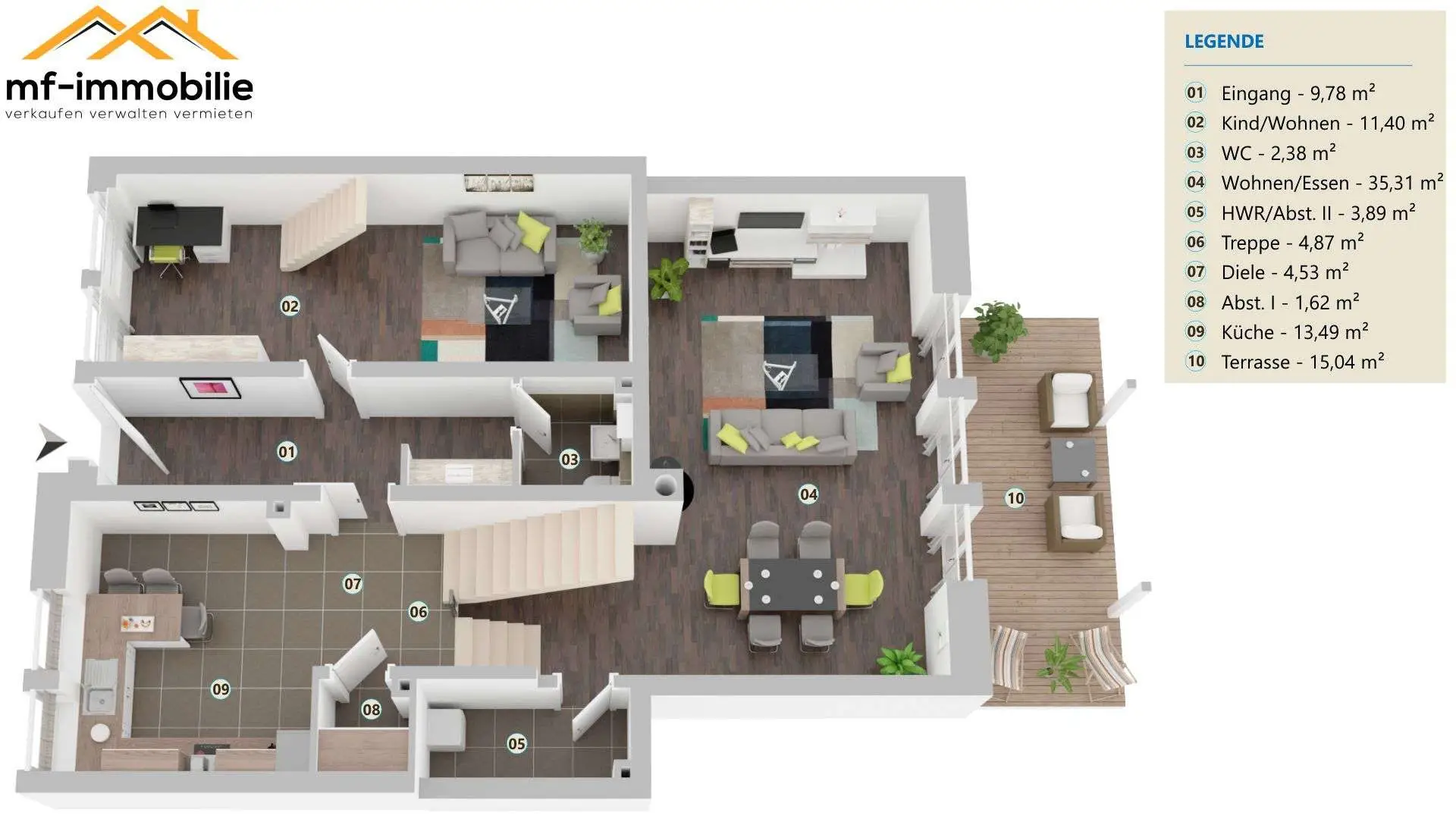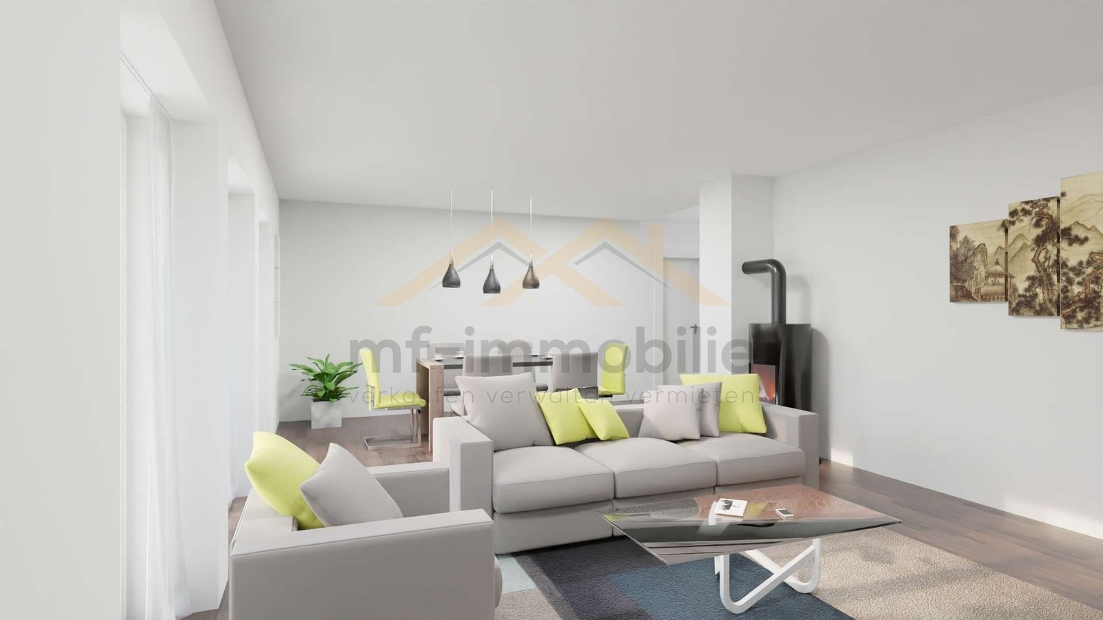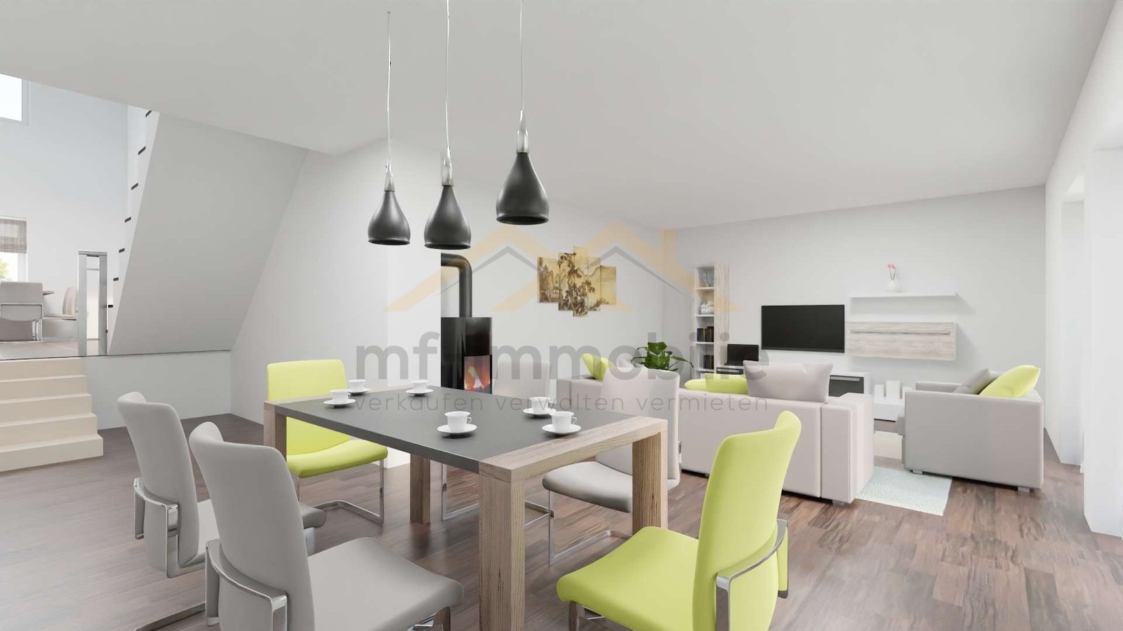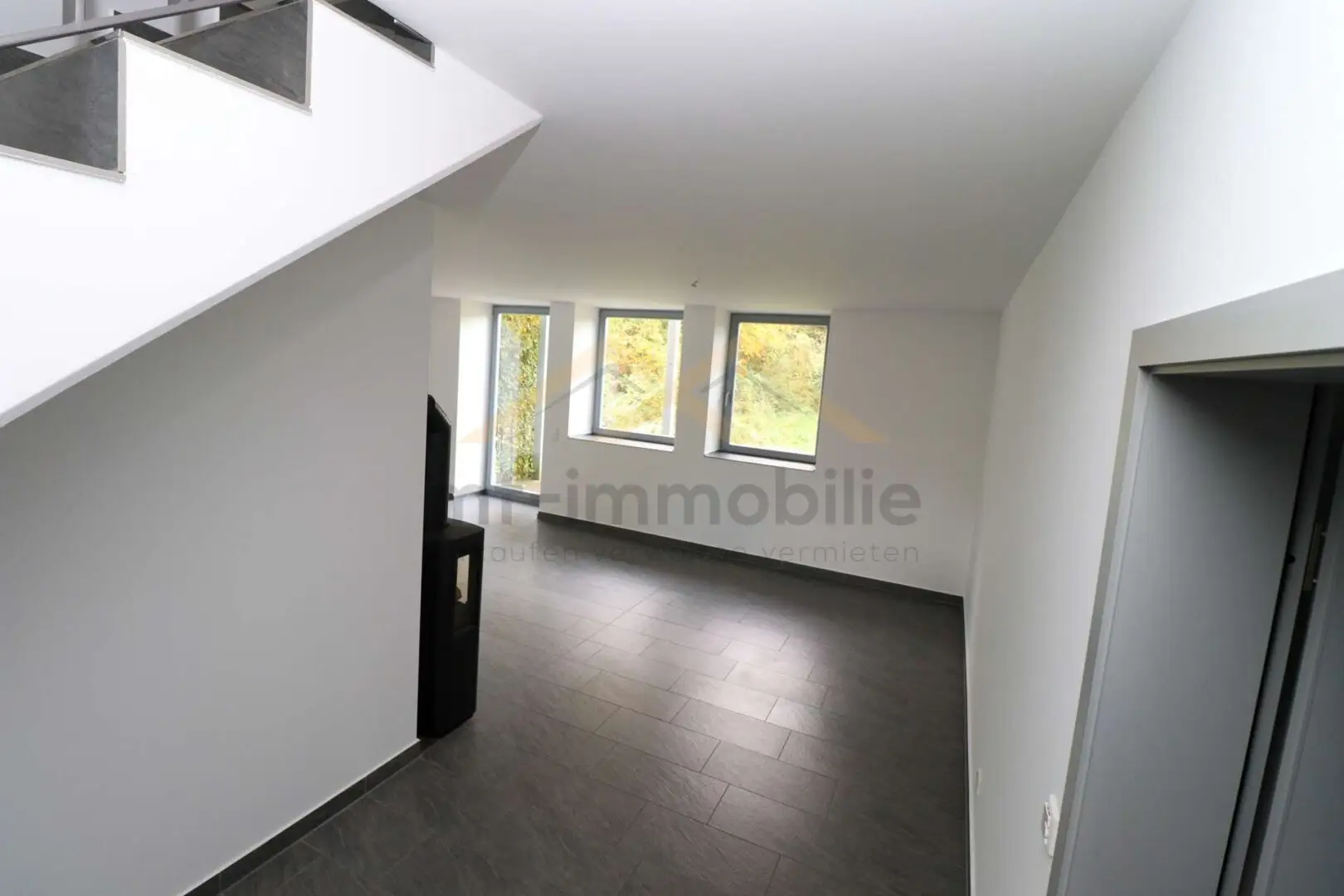 Im geräumigen, offenen Wohnbereich befindet sich ein gemütlicher Kaminofen, der für wohlige Wärme an kalten Tagen sorgt. Die Einbauküche ist modern gestaltet und bietet viel Stauraum. Ein Gäste-Bad sowie ein Abstellraum runden das Raumangebot ab.