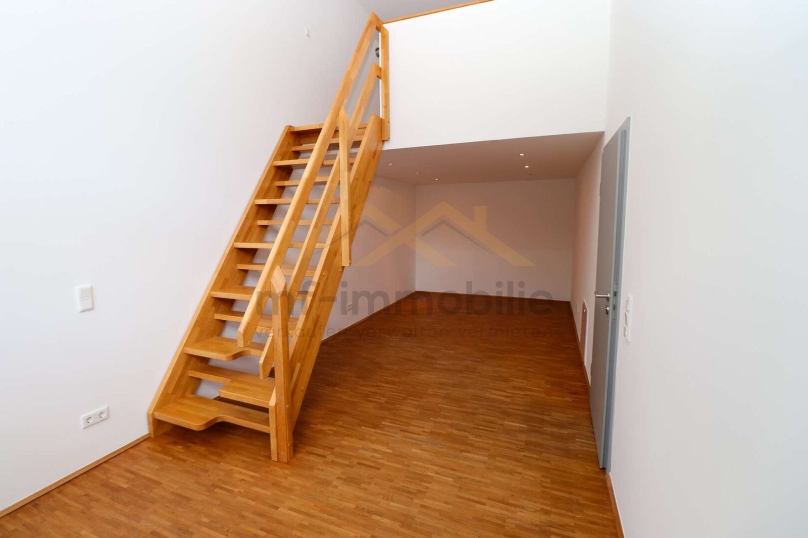 Über eine Treppe gelangt man in das Obergeschoss, wo sich 2Schlafzimmer und ein Badezimmer befinden. Die Maisonette-Wohnung verfügt außerdem über einen Außenstellplatz, der für 25 € monatlich angemietet werden kann.